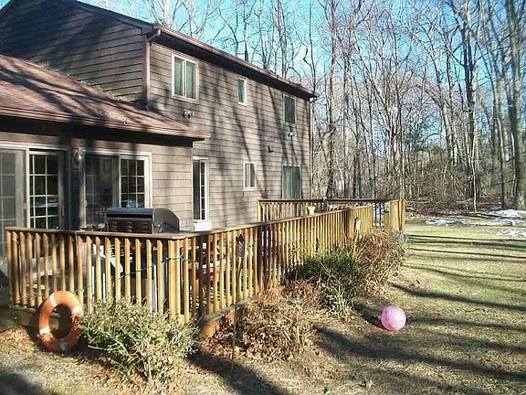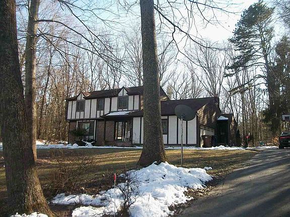 Cedarfields! Move-in condition Tudor Colonial on a quiet cul-de-sac minutes from everything. Set back from the street, up above a broad expanse of lawn, this home is waiting for its next family. Freshly painted interior, gleaming hardwood floors, new carpeting are only part of what went into making this home ready for you to enjoy. There remains little to do other than thank the moving company and sit on your deck and enjoy the quiet wooded, two-plus acre lot. Formal dining room looks over the wooded back yard; generous eat-in kitchen for everyday meals on the run. Step out to the deck for morning coffee or step down into the cathedral-ceilingd family room and let the fireplace warm you on cold winter nights.There is a finished basement with bath! that will lend itself to a variety of uses, perfect for a full-on man-cave or a place to get away from it all without ever leaving the house.