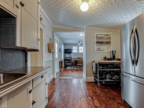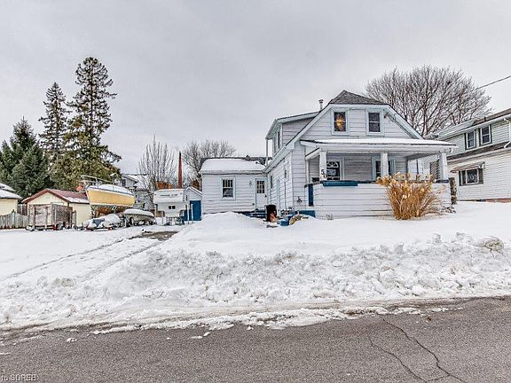 This 1.5 storey home has character galore and shows really well. Affordable and in a good area of town. Close to Norfolk General Hospital and Elementary school. The main floor offers a generous sized dining room, Character kitchen with 2 year old stainless appliances (fridge and gas stove), 3 pc updated bathroom, primary bedroom, living room and lovely front foyer. Upstairs you'll find 2 additional bedrooms (one currently set up as an office), a cozy 3 pc bath with a beautiful soaker tub. Outside you'll find a generous amount of space on this double lot for extra guests to park or outdoor storage for some winter/summer toys. A detached garage, back yard with deck and partially fenced. Home is heated with Hot water boiler 2015 and Roof was replaced in 2015. Owned water softener & Hot Water Heater. Windows 2017, Most doors 2019. 100 amp Hydro Breaker panel, and updated Pex plumbing.