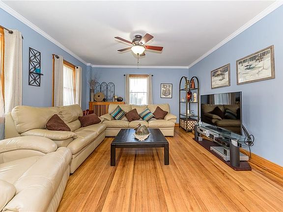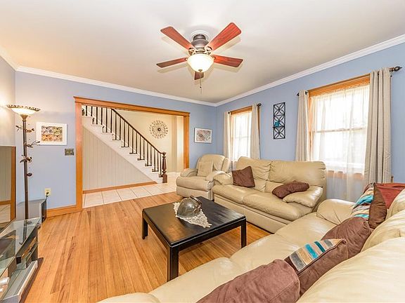 This 2 story colonial boasts with stunning features. The front porch is a desirable place to be to enjoy sunny weather and spring time blossoms. Enter through the foyer & make your way to the living room that shines with natural light & decorative wood trim. The spacious formal dining room has beautiful polished hard wood floors & crown moulding, w/ lots of space to enjoy meals & entertain! SS appliances are featured here in the EIK. Lovely built in wine rack in the beautiful oak cabinetry, granite counter tops w/ ample space, & recessed light are additional features offered in the kitchen. 1 full bath and 1 BR are also house here on the 1st level. Up on the 2nd floor you will notice 3 spacious BRs w/ great closet space, & the 2nd full bath. Full basement w/ 2 HWH, and 3 gas meters, one for each floor of the home. Overlook the magnificent fenced in yard & spacious patio form the rear deck. This home has lovely features you do not want to miss out on!