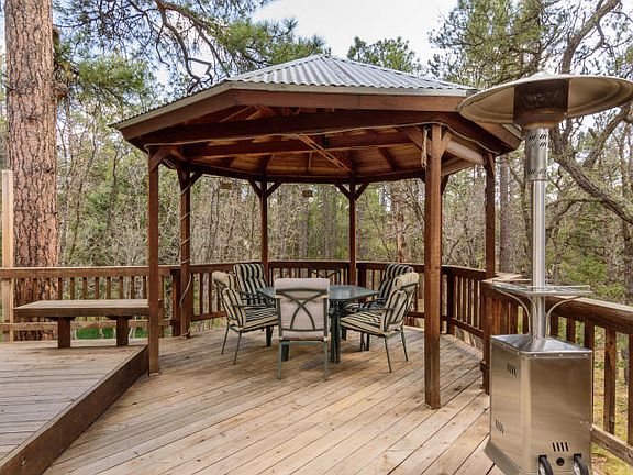 Pristine ONE Owner, well loved, custom home, literally nestled into the TALL Ponderosa Pines! This one has it ALL! Perfect for entertaining, bird watching and star gazing. Huge Master Suite! Toast warm radiant heat, updated kitchen with lovely granite countertops, updated bathrooms, Pella windows, updated lighting throughout, water softener, NEW oak staircase, built-in's in all the closets. Fully fenced and gated, Three car garage, gorgeous gazebo on the huge deck. 12x20 storage shed. Water catchment system to keep the landscape looking amazing guiltlessly! Ready to call HOME!!!