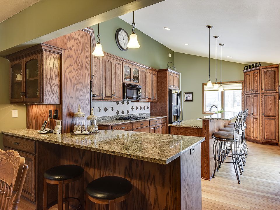 Beautifully updated home on large fenced double lot near Wekota Beach & Park. Home features a large gourmet kitchen with vaulted ceilings, plenty of cupboards and counterspace, granite of course. Sliders off kitchen walkout directly onto patio for convenient grilling and dining. Updated bathrooms, main floor master with master bath & large walk in closet. Hardwood floors throughout. Basement is drain tiled and can be used as-is as a rec room or further finished to your liking. Heated garage and large mud room. Not lakefront, but walking distance to the beach for daily family enjoyment. If you have a boat, marina is right there too. So much to love about this house & the location! To help visualize this homeâs floorplan and to highlight its potential, virtual furnishings may have been added to photos found in this listing.