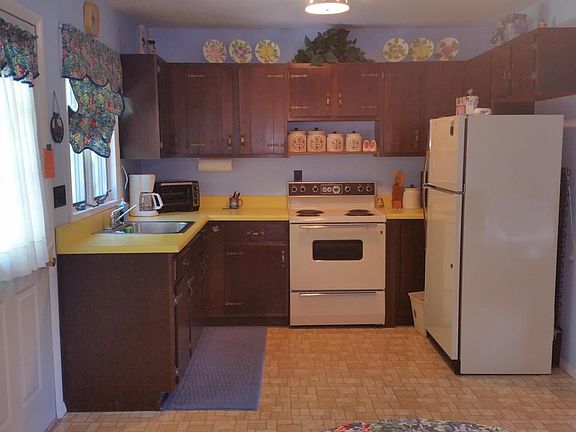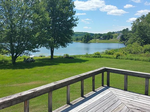 This Attractive Lakefront Chalet on 1+ acre is situated on an exceptional 35 Ac spring fed lake.Outside features include a spacious back yard for family fun,shade providing trees,a large deck promoting beautiful views of the lake & 2 storage sheds. Inside features include immaculate open dining living area with patio doors & large windows, nice sized bedrooms,a full bath and generous attic storage.