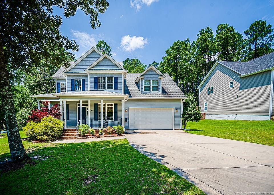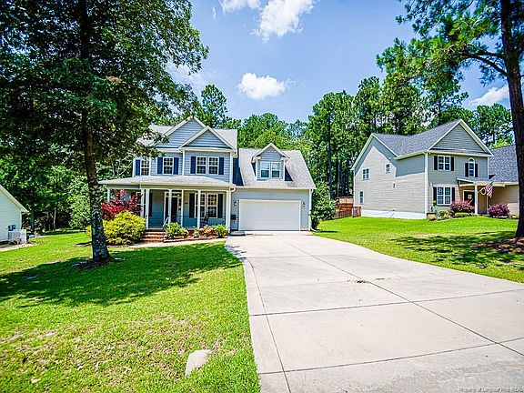 This beautiful home sits on a spacious lot with beautiful trees and privacy. Enjoy the screened back porch while you enjoy the Carolina sunshine! 4 bedrooms, 2.5 baths, and bonus room with master bedroom on first floor that includes trey ceiling and en suite bath w/jetted tub, walk in shower, and double vanities plus WIC; open kitchen w/granite countertops and SS appliances open to spacious living room w/fireplace to cozy up the living space; kitchen has breakfast area and formal dining room; hardwood floors throughout main living area on first floor; upstairs has 3 spacious bedrooms with great size closets! HUGE bonus/theater room w/movie theater furniture, projection screen and equipment included! NEW HVAC AND NEW WATER HEATER IN 2019; enjoy the community pool, tennis courts, basketball courts, lake, and beach area. Just minutes to Ft. Bragg and surrounding areas, schools, and restaurants!