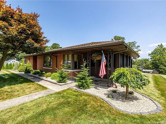 You are going to thank your lucky stars that you've found THE ONE!! This mid-century ranch is everything you've dreamed of and more! A solid all-brick home on an amazing, almost acre (!) lot with views of a farm! Where to begin? As soon as you set eyes on this home, you're in love. The incredible lush lawn, the classic beauty of the brick and when you step inside, you just know you're home. Large living room with hardwood floors, fabulously remodeled kitchen with an abundance of cabinetry, tremendous counter space, stainless appliances, pantry and dining area too. Generously sized bedrooms (check out the corner windows!) with hardwood floors and terrific closets. Bedroom 3 is currently utilized as a home office and offers flexibility to meet your needs. Completely remodeled and updated full bath offers dual sink vanity with granite counter and tasteful tile flooring. Lower level is partially finished and offers potential for future bath (rough in is present). The oversized garage is spotless with epoxy flooring. But wait! Did we talk about the 3 season porch! Tongue and groove walls and ceiling, tile floor and access to the park that is the backyard! Firepit, patio, playscape, shed, garden area and this lawn. This yard is the talk of the town! Come see, fall in love, you'll be forever grateful. Please submit your offer by Tuesday 8/8/23 5:00 pm
