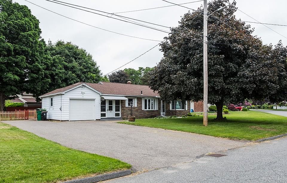 WONDERFUL RANCH! Well proportioned rooms in this lovely home. Large eat-in kitchen with center island new flooring and granite counter Generously sized living room with hardwood floors. Two bedrooms both with hardwood floors. Bathroom with tub and shower. Finished basement with game room and bar. Lower level has an additional room with closet and 3/4 bath and laundry. Enclosed breezeway and attached porch leads to deck. Level fenced-in back yard with shed. Updated electrical, roof is newer and replacement windows. Attached one car garage. In-ground lawn sprinklers. Gas heat and central air-conditioning.