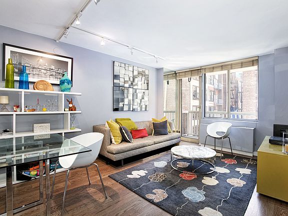 Unlimited subletting! Renovated 1 bedroom with private balcony with city views! The apartment features an open kitchen with granite breakfast bar, countertops and backsplash; stainless steel appliances including a Bertazzoni range, Blomberg refrigerator, and Monogram dishwasher; and Ultracraft custom cabinetry. There are hardwood floors throughout, abundant closet space, and a large enough living room to accommodate a dining table as well. 50 Lexington Ave is an investment-friendly co-op that operates like a "condop" with very few restrictions on purchases and renting/subletting. Pets allowed. This full-service luxury building offers a wrap-around roof deck with 360 degree views, 24-hour doorman, indoor lap pool, sauna, fitness room, central laundry and live-in super. Convenient location close to Gramercy and Madison Square Parks, the 6 and R/W subway lines, Union Square, Eataly, and a plethora of great shopping and dining options.