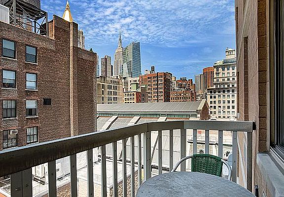 Beautiful fully furnished 1 bedroom ready to move into with a private balcony with city views! The home features an open kitchen with a granite breakfast bar, countertops, and backsplash; stainless steel appliances including a dishwasher; and Ultracraft custom cabinetry. There are hardwood floors throughout, abundant closet space throughout, and a large enough living room to entertain. Great size bedroom with large closet and a large western facing window. Recessed lighting and central air complete the home. This full-service luxury building offers a wrap-around roof deck with 360-degree views, a 24-hour doorman, an indoor lap pool, a sauna, a fitness room, central laundry, and a live-in super. Convenient location close to Gramercy and Madison Square Parks, the 6 and R/W subway lines, Equinox, Union Square, Wholefoods, and a plethora of great shopping and dining options.