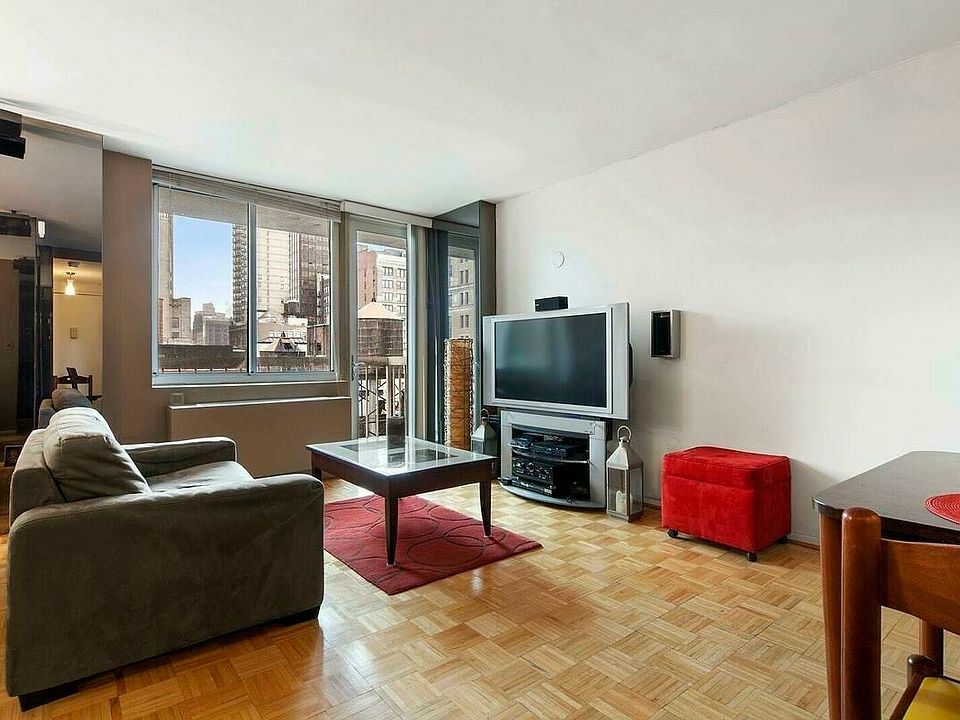 BRIGHT HOME with BALCONY! NO FEE!! Spacious alcove studio on high floor with a private balcony, superior light and spectacular views of the NYC skyline. Your home features a fully equipped pass-through kitchen, an updated marble bath and tremendous closet space. The building offers 24 hr DM, live-in super, indoor swimming pool, gym, sauna, laundry room and a roof deck with stunning 360 degree views of NYC Landmarks and beyond! (Gym and pool/sauna currently closed.) The location could not be more convenient. At the crossroads of Gramercy and Flatiron, you're right near Gramercy and Madison Sq Parks, the 6 and R/W trains, Union Sq Farmer's market, Eataly, great shopping and dining. Sorry, absolutely NO PETS. Snatch it up before it's gone! Please NOTE: Furnished pictures of model apt of same layout and size. Apt is unfurnished.