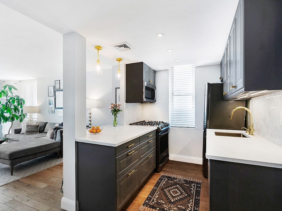 AS OF 6/1/2025: APPLICATION HAS BEEN SUBMITTED. NO MORE SHOWINGS. BEAUTIFULLY GUT RENOVATED 1 BR/1.5 BATH W/ BALCONY. Spacious and quiet one bedroom with oversized master suite separated from a sun-drenched living room by an open-concept kitchen. The apartment boasts three exposures north, west, and south with morning and afternoon sun filling the living area and affording a perfect place for a morning coffee or a late afternoon glass of wine on the balcony. Ample square footage across the apartment means plenty of nooks for home office setup. White oak hardwood floors throughout as well as through the gut-renovated kitchen with all new stainless steel Bosch appliances and quartz countertops. Recessed lighting and soffits throughout are controlled by dimmers. Ample closet space customized with Elfa adjustable shelving. The entire apartment has been fully gut renovated down to the studs to create a perfect blend of modern and traditional. The full service building offers 24 hour doorman, live-in super, gym, sauna, laundry room, indoor swimming pool, and a roof deck with stunning views of many NYC landmarks! Just steps away from Madison Square Park, some of the best restaurants and bars in the city in the Flatiron District, great shopping on 5th Avenue , and Union Square Farmers' Market. Sorry, NO PETS.
