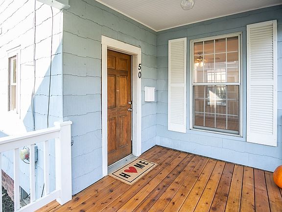 Come see this charming home within walking distance to town. The first floor features an updated kitchen with breakfast bar, spacious living room with beautiful tin ceiling that opens into the dining room, sun-filled south facing sunroom and a full bath. Upstairs has 3 bedrooms with plenty of storage space. Updates include newer natural gas heating system, new front and back porches and a brand new roof! Outside enjoy the fenced in yard ideal for gardening and entertaining. Easy access to major routes.