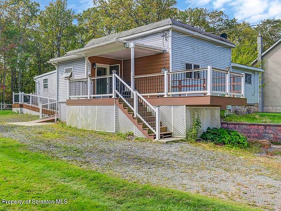 This charming raised ranch home located at Moosic Lakes is full of potential and just waiting for a little TLC to restore its full value. With three spacious bedrooms, including a large master, and the possibility of adding a second bathroom (plumbing is already in place), it offers plenty of room to grow. The 32 x 15 sq ft Trex decking on the deck and front porch adds outdoor living space, perfect for enjoying the tranquil views across the street from the little lake. Situated in a fantastic community with an HOA fee of $900 per year, residents also enjoy access to a peaceful, spring-fed lake, ideal for fishing or leisurely walks. The community offers a variety of activities for both children and adults, creating a welcoming and active environment. Public sewer is $95 per month, and the location is in the desirable North Pocono School District. Plus, with no motorized or electric boats allowed and no rentals (including STR or Airbnb), the area maintains a peaceful atmosphere, making it an ideal place to call home. An additional lot-19 X 150....1 car attached garage