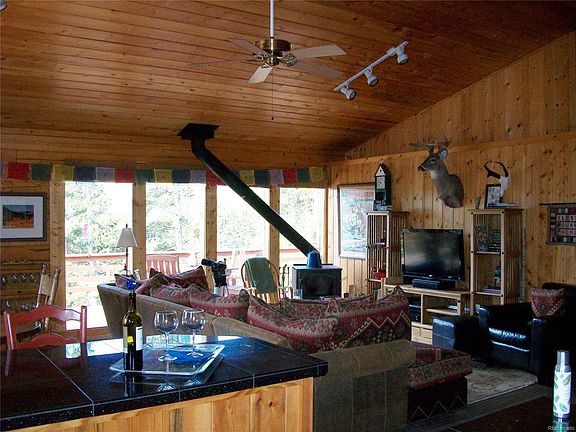 This is a GORGEOUS log mountain home with tons of windows and amazing views. The exterior offers a large deck for entertaining and a lower concrete patio; a beautiful mixture of pine and aspen trees on a large wooded gently sloping 1 acre lot; an oversized double car garage for all of your summer and winter toys; 2-run dog kennel; and year around access. The interior offers a large open floor plan; new wood floors and tile; vaulted ceilings with ceiling fans and track lighting; all wood interior and wood burning stove for that cozy cabin ambiance; the back of the home including the living room and master have solid windows for Southern Mt. Evans views and amazing passive solar; and beautiful kitchen with high end appliances including a convection oven and built-in wine cooler. This is an outdoor recreational area offering many trails for ATVing, cross country skiing, hiking, and access to multiple nearby lakes. This is a stunning home that you will need to see to appreciate!