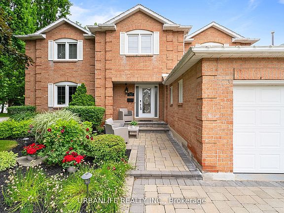 Welcome to this beautifully maintained 5-bedroom, 4-bathroom home offering over 3,600 sq. ft. of luxurious living space, nestled in the heart of the highly sought-after Bramalea Woods community. This exceptional property combines timeless elegance with modern functionality, perfect for growing families or multi-generational living. Step through the grand double-door entry into a spacious, light-filled foyer that sets the tone for the entire home. The main floor features expansive principal rooms with gleaming hardwood floors, including a formal living and dining room ideal for entertaining. A main floor office provides a quiet and practical space for working from home. The open-concept kitchen serves as the heart of the home, featuring a walk-in pantry, eat-in breakfast area, and a cozy family room with large windows overlooking a professionally landscaped backyard your own private retreat, perfect for outdoor dining, summer barbecues, and gatherings with family and friends. Upstairs, the primary suite is a tranquil escape with custom built-ins, a luxurious 5-piece ensuite, and peaceful views of mature trees. The adjacent bedroom can serve as a sitting room, nursery, or second office. All additional bedrooms are spacious and offer ample closet space. The fully finished basement offers amazing versatility with rough-in kitchen plumbing, a games or bar area, a gym or rec room, and a 3-piece bath to meet various needs. Additional features include a wide interlocked driveway fitting 4+ vehicles, a double-car garage, and professionally landscaped front and back yards. Located near top-rated schools, parks, shopping, transit, and Hwy 410, this is an exceptional home in one of Bramptons most prestigious neighbourhoods.