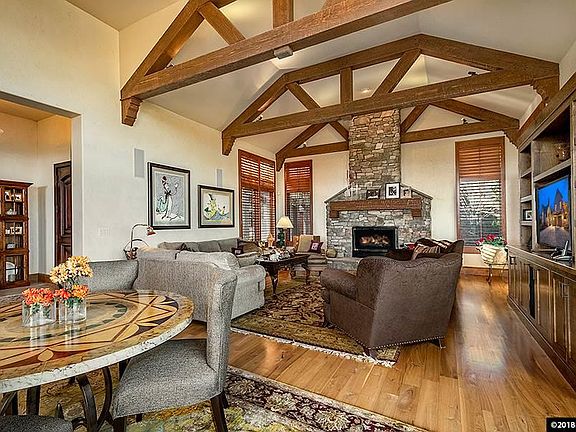 Sitting on 1.52 acres, this luxurious home is located in the exclusive Eaglenest area of Caughlin Ranch with gated private access & boasting superior architecture. This property abounds with many unique amenities ideal for entertaining. Enjoy a private courtyard entry with outdoor fireplace & serene fountain. The cozy patio off the kitchen and office is complete with built-in BBQ and Italian wood-fired pizza oven. The en-suite bedrooms, each with their own patio, offer beautiful mountain views.