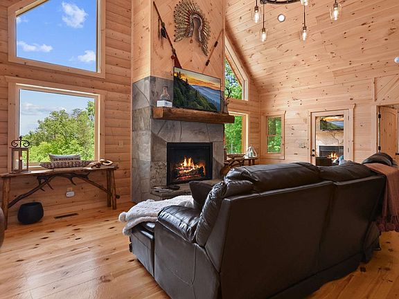 Discover the epitome of rustic elegance in this stunning luxury cabin nestled on 3.8 acres just minutes away from downtown Blue Ridge. 4 bedrooms, 4 1/2 baths, and an inviting bonus/game room, this mountain haven offers the perfect escape for those seeking a serene and picturesque retreat. As you step inside, you'll be greeted by custom built wood furnishings, expertly curated to complement the cabin's natural charm. The spacious and well-appointed living spaces provide ample room for relaxation and entertainment. Gather with loved ones in the cozy living room, or challenge friends to some foosball in the game room, complete with various entertainment options. Take in the breathtaking year-round mountain views from the comfort of the cabin's expansive windows and decks. Embrace the tranquil setting while enjoying the company of family and friends around the outdoor fire pit or soaking in the luxurious 6 person hot tub, creating unforgettable memories under the starlit sky. For outdoor enthusiasts, a 4 wheeler garage or workshop is attached to the carport, perfect for storing recreational vehicles or additional storage for your tools. Additionally, for eco-conscious individuals, an EV charger is conveniently installed, ensuring your electric vehicle is fully charged and ready for your next adventure. Whether you're seeking a private weekend getaway or a year-round residence, this luxury cabin offers the ideal balance of comfort, style, and natural beauty.