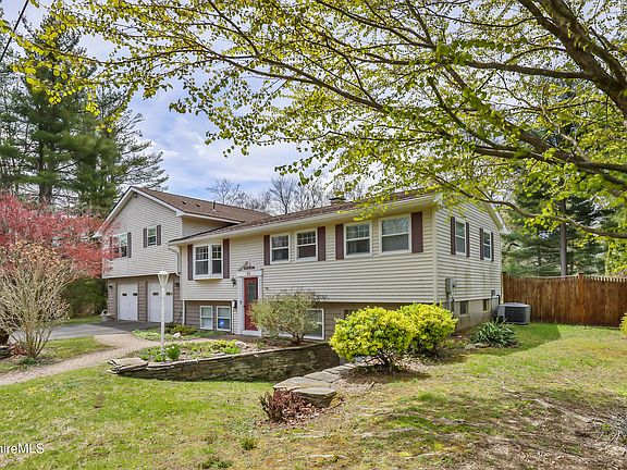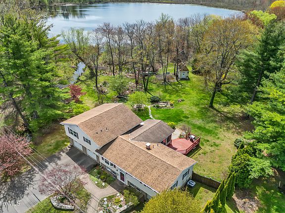 Introducing a truly special expanded raised ranch set on approx .80 acres of manicured lawns and exquisite gardens. This 3 bed 2.5 bath raised ranch has been tastefully renovated and maintained over the years. Offering a freshly renovated primary suite complete with custom walk-in shower, recently renovated kitchen with granite countertops, impeccable hardwood floors that lead into a 3 season sunporch overlooking Goodrich pond and the properties many gardens. In the living room you will find floor to ceiling windows and a gas fireplace for those chilly nights. Two additional bedrooms and a full bath round out the 1st floor. On the lower level you will find a spacious family room, laundry and half bath. Two separate garages on the lower level nicely round out this remarkable property