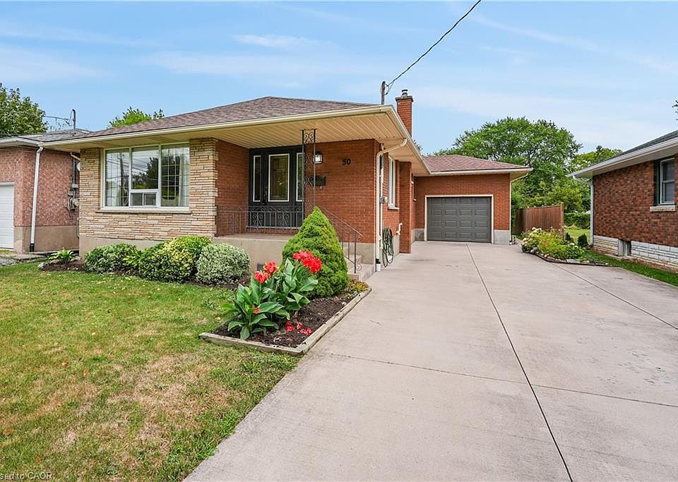 TRADITIONAL-STYLE BUNGALOW with IN-LAW POTENTIAL … Welcome to 50 Louth Street, a classic all-brick bungalow nestled on an impressive 50’ x 305’ lush property in St. Catharines, perfectly located close to schools, parks, shopping, public transit, and just minutes to the 406 and highway access. With a spacious 4–6 car driveway, attached garage with new door (2025), and a covered front porch, this home offers both curb appeal and convenience. Step inside to a welcoming foyer that leads into the bright kitchen with wood cabinetry, QUARTZ counters, updated backsplash, gas stove & cozy dinette. A pocket door opens into the warm and inviting living room with picture windows, featuring hardwood floors & traditional crown moulding. Three bedrooms, all with hardwood + a 4-pc bath complete the main level. The FINISHED LOWER LEVEL expands the living space with a SECOND KITCHEN area, large recreation room with gas fireplace and pot lights, 3-pc bath (2019), utility/laundry room, cold room, and generous storage - ideal for extended family or in-IN-LAW SUITE POTENTIAL. Large windows and a side entrance add natural light and functionality. Outside, the backyard is perfect for gardeners and nature lovers, with established vegetable gardens, pear and peach trees, berries, asparagus, carrots, and gooseberry bushes. A block pathway, man door from the garage, and patio area provide excellent outdoor flow. Important UPDATES include a roof (2019), appliances, carpet, and backsplash (approx. 7 years), and owned hot water tank. With a gas BBQ hookup and ample outdoor space, this property blends comfort with practicality. Whether you’re looking for a solid family home or an investment with in-law potential, 50 Louth Street is a property filled with opportunity. CLICK ON MULTIMEDIA for video tour, drone photos, floor plans & more.
