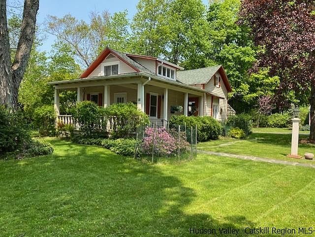 LOCATION,LOCATION...This almost 100 year old Cottage was built as an Artists Studio, the main room has double heighten ceilings, Wood Burning fireplace, large Artists window and Balcony overlooking the main space currently being used as an office and reading nook with built in’s...Every detail meticulously cared for. A short walk or bike ride into the Town of Woodstock. There is a separate studio space with two entrances that has heat and good light. Many options for this space, need another bedroom, home office ?... The large detached Garage could be used for a workshop etc..Mature plantings and a lovely front porch to watch the birds and a rear deck to have a outdoor barbecue. With a fenced in area for your pets... Looking for a Full time residence or weekend getaway this property checks off all the boxes!!! Adding 224 sf to the property for the Studio which could easily be a third bedroom!