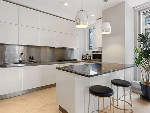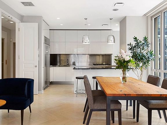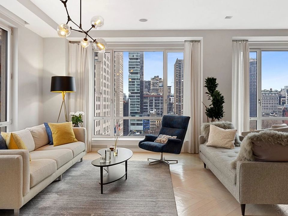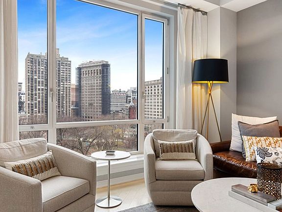 Full-floor condo loft residence facing Madison Square Park. Enjoy 29' of unobstructed direct southern views of Madison Square Park from this top full-floor, corner 3-bedroom, 3.5-bath boutique condo loft home. Enter through a keyed elevator into a 2,630 square foot sanctuary with 10-foot ceilings, floor-to-ceiling windows, and an expansive light-filled great room with views of the MetLife Clocktower and Flatiron Buildings. This full-floor corner residence offers a clean modern design complemented by stunning herringbone wood floors and windows in every room. A beautiful Poliform Varenna kitchen with sleek white lacquer cabinetry, stainless steel counters and backsplash, Sub-Zero refrigerator, Miele six-burner cooktop, Bosch oven, and Miele dishwasher opens onto a large dining area and lounge seating area. A dramatic gallery, perfect for displaying your art collection, transitions to the bedroom wing of the home, where each bedroom has its own en-suite bathroom. Seclude yourself in the expansive primary bedroom suite complete with custom cabinetry including a media unit and a thoughtfully designed walk-in closet. The primary bathroom features a 6-foot Kohler soaking tub, double-sink vanity, and a glass-enclosed shower. Separate laundry room with full-size Samsung washer and dryer, 2-zone central HVAC, built-in speaker system, and private storage. 50 Madison Avenue is a boutique full-service condominium with only 8 residences in the heart of one of the most desired neighborhoods downtown. Enjoy everything you need right outside your door, including easy access to transportation, shopping, and the best dining in NYC with Eleven Madison Park (voted #1 in the world in 2017), Scarpetta, Eataly, and the Clocktower restaurant in the Edition Hotel.
