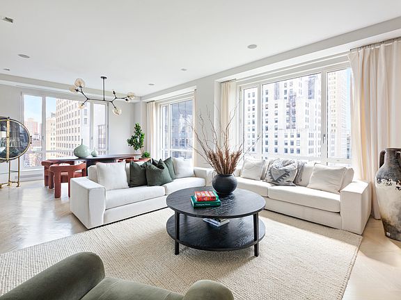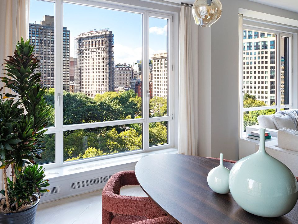 Full-floor condo loft residence facing Madison Square Park. Enjoy 29' of unobstructed direct southern views of Madison Square Park from this top full-floor, corner 3-bedroom, 3.5-bath boutique condo loft home. Enter through a keyed elevator into a 2,630 square foot sanctuary with 10-foot ceilings, floor-to-ceiling windows, and an expansive light-filled great room with views of the MetLife Clocktower and Flatiron Buildings. This full-floor corner residence offers a clean modern design complemented by stunning herringbone wood floors and windows in every room. A beautiful Poliform Varenna kitchen with sleek white lacquer cabinetry, stainless steel counters and backsplash, Sub-Zero refrigerator, Miele six-burner cooktop, Bosch oven, and Miele dishwasher opens onto a large dining area and lounge seating area. A dramatic gallery, perfect for displaying your art collection, transitions to the bedroom wing of the home, where each bedroom has its own en-suite bathroom. Seclude yourself in the expansive primary bedroom suite complete with custom cabinetry including a media unit and a thoughtfully designed walk-in closet. The primary bathroom features a 6-foot Kohler soaking tub, double-sink vanity, and a glass-enclosed shower. Separate laundry room with full-size Samsung washer and dryer, 2-zone central HVAC, built-in speaker system, and private storage. 50 Madison Avenue is a boutique full-service condominium with only 8 residences in the heart of one of the most desired neighborhoods downtown. Two blocks away is the newly opened Whole Foods supermarket on the corner of Madison Avenue and East 28th Street. Enjoy everything you need right outside your door, including easy access to transportation, shopping, and the best dining in NYC with Eleven Madison Park (voted #1 in the world in 2017), Scarpetta, Eataly, and the Clocktower restaurant in the Edition Hotel.