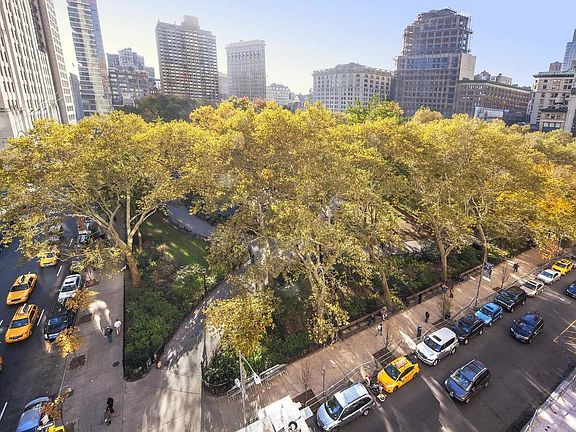 Luxurious living abounds in this spectacular, full-floor condo with 2,630 square feet (SF), three bedrooms, and 3.5 bathrooms in a boutique, private doorman building. The key-locked elevator opens onto an elegant gallery leading into a magnificent 28-SF great room spanning the entire width of Madison Square Park. Boasting stunning views above the tree tops, the enormous windows capture the tremendous southern light and showcase unobstructed views of the entire six-acre park below as well as the Flatiron building and MetLife Clock Tower. The spacious living room with 10.3-foot ceilings is the perfect space for both casual and formal entertaining with a solid wood custom built-in for books, TV, and art. The heart of the home lies in an open, eat-in windowed chef's kitchen with custom cabinetry, marble counter tops, high-end stainless steel appliances (including 36-inch Sub-Zero refrigerator, 46-bottle Sub-Zero wine cooler, & 6-burner Viking stove), breakfast bar, and a gracious dining area. Conveniently positioned across from the kitchen is a powder room. Moving into the private living area, there are three spacious bedrooms, each with an en-suite bathroom, large east facing windows and ample closets. The over-sized master suite is a peaceful retreat with a thoughtfully designed custom-built walk-in closet. The beautiful master bathroom has a deep soaking tub, double-sink vanity and a large glass enclosed shower. Other fabulous features in the apartment consist of a custom-built laundry/storage room holding new full-sized LG washer & dryer units, 2-zone central A/C, and private storage area in the basement (approximately 8'x10'x8'). This boutique, full-service building with 24-hour attended lobby is the sophisticated home where savvy New Yorkers dream of living. Situated in the heart of Madison Square Park's historic Flatiron district with picturesque views, it is suitably located near many fine destinations, including Eataly, 24-Hour Fitness, SoulCycle, delicious dining options, and Fifth Avenue shopping. Schedule your appointment today! (Pets will be considered on a case by case basis.)