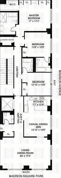 Full-floor condo loft residence facing Madison Square Park. Enjoy 29' of unobstructed direct southern views of Madison Square Park from this top full-floor, corner 3-bedroom, 3.5-bath boutique condo loft home. Enter through a keyed elevator into a 2,630 square foot sanctuary with 10-foot ceilings, floor-to-ceiling windows, and an expansive light-filled great room with views of the MetLife Clocktower and Flatiron Buildings. This full-floor corner residence offers a clean modern design complemented by stunning herringbone wood floors and windows in every room. A beautiful Poliform Varenna kitchen with sleek white lacquer cabinetry, stainless steel counters and backsplash, Sub-Zero refrigerator, Miele six-burner cooktop, Bosch oven, and Miele dishwasher opens onto a large dining area and lounge seating area. A dramatic gallery, perfect for displaying your art collection, transitions to the bedroom wing of the home, where each bedroom has its own en-suite bathroom. Seclude yourself in the expansive primary bedroom suite complete with custom cabinetry including a media unit and a thoughtfully designed walk-in closet. The primary bathroom features a 6-foot Kohler soaking tub, double-sink vanity, and a glass-enclosed shower. Separate laundry room with full-size Samsung washer and dryer, 2-zone central HVAC, built-in speaker system, and private storage. 50 Madison Avenue is a boutique full-service condominium with only 8 residences in the heart of one of the most desired neighborhoods downtown. Two blocks away is the newly opened Whole Foods supermarket on the corner of Madison Avenue and East 28th Street. Enjoy everything you need right outside your door, including easy access to transportation, shopping, and the best dining in NYC with Eleven Madison Park (voted #1 in the world in 2017), Scarpetta, Eataly, and the Clocktower restaurant in the Edition Hotel.