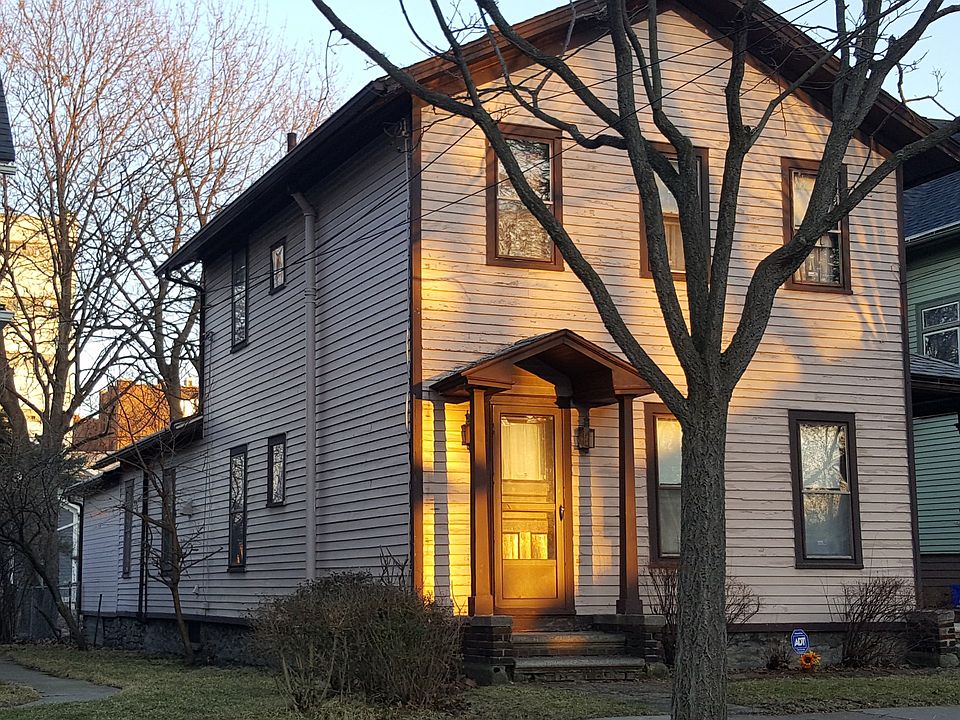 Charming & Historic 4 bedrooms, 2 full bath Spacious Colonial in Heart of the Susan B Anthony Preservation District. 1st Flr Master Bedroom, painted Wood Trim, Lrg Modern Eat-In Kitchen, 1st Flr Laundry, Stamped tin Ceilings. Needs a lot of WORK.