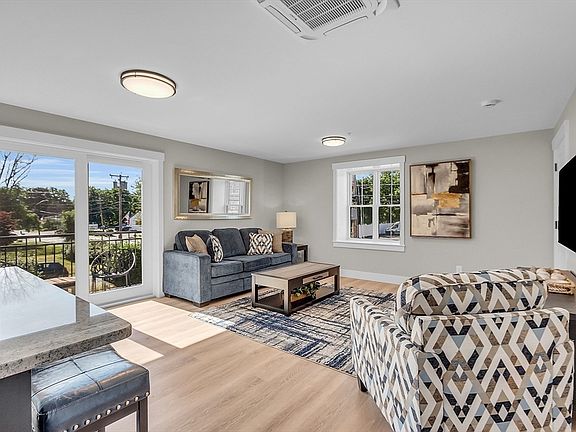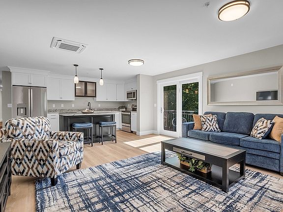 The Residence at 50 Main Street. A stunning new 2 bedroom garden style condo where elevator service meets convenience. This home boasts an inviting open floor plan with spacious kitchen, SS appliances and center island. The living and dining area have access to a balcony. Enjoy the ease of single-floor living with two bedrooms, a full bath, a half bath, and in-unit laundry for ultimate comfort. Features include garage parking for 2 cars, A/C, private storage, deeded parking and guest parking. Centrally located with easy access to shopping, dining, and community services. This upscale condo is ideal for those seeking a maintenance-free lifestyle. Whether you're downsizing, starting fresh, or looking for a convenient urban retreat. Within walking distance to a coffee shop, grocery stores, town field, restaurants and urgent care. A must see!