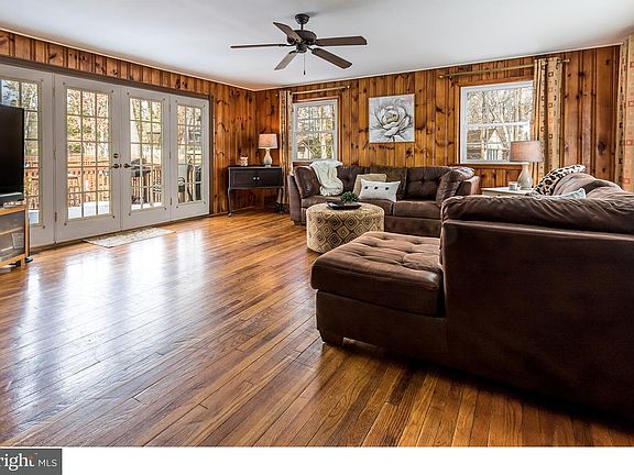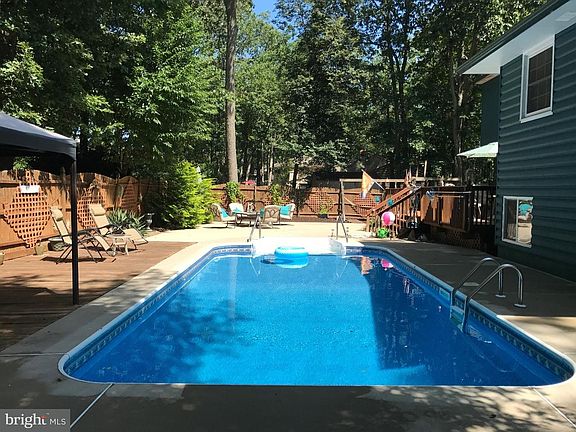 Room for everyone! This custom home addition adds extra bedrooms and bathrooms, providing you with room for the whole gang. Great location on desirable Manhasset Trail, walk to the beach and lake, bike to school and the ball fields. Plenty of off street parking with a large covered front porch. The 2 car garage was converted into an office and can easily be turned into a garage again, if you so desire. A new front door opens to the spacious living room with hardwood flooring, fireplace with wood insert (to help cut down on those heating bills), French doors to the backyard deck and knotty pine paneled walls (a Medford Lakes requirement;) The dining room overlooks the front yard and is open to the kitchen. The kitchen has a breakfast bar, Pergo tile flooring, new glass tile backsplash, all appliances are included. Large family room with closet storage, powder room and access to the garage and backyard. The new master suite is located on the uppermost level and has hardwood flooring, large walk in closet and full bath with shower stall. This level also has 2 more bedrooms and another full bath. The middle level has 2 large bedrooms and a third full bath. The laundry room is to die for - with lots of storage, countertops for folding and room for all your wash day needs. This room could also be a 6th bedroom if needed and the laundry room moved back to it's original location in the laundry closet off of the family room. This home has multi-zone baseboard heat and 2 zone central air conditioning, newer vinyl replacement windows, ceiling fans, hardwood floors. As roomy and spacious as the interior is, the backyard is where you will spend all your time. The living room French doors open to a large deck overlooking the privacy fenced backyard. A vinyl lined inground pool is just what is needed after relaxing in the sunshine on the patio, just in case it is a little chilly the pool is heated. The yard also has a play area with play set, decking at the pool and storage shed. All of this in Medford Lakes, Playground-In-The-Pines. The seller is also offering a one year home warranty to the buyer, so relax, it's covered. And if you ever want to leave your home, you are just minutes from shopping, dining and major highways. Go ahead - jump in the pool!