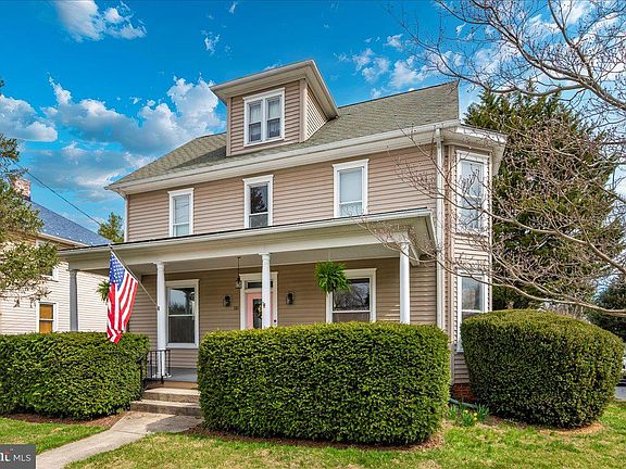 A stunning turn-of-the-century home seamlessly blending historic charm with modern conveniences in the heart of Downtown Walkersville! This move-in-ready beauty boasts a classic floor plan featuring original woodwork, hardwood floors, and an updated primary bathroom. The spacious, light-filled interior includes a generous living room, family room, dining room, and a full bath on the main level. Upstairs, you’ll find large bedrooms, including a well-appointed primary suite with a generous built-in closet. A walk-up attic offers excellent potential for additional living space. The fully finished walk-up basement, complete with LVP flooring and a full bath, makes for a perfect in-law suite or potential 5th bedroom. Dual-zoned HVAC ensures year-round comfort. Enjoy relaxing on the expansive Trex-decked front porch or hosting gatherings in the private backyard, which features a partially covered flagstone patio. The property also includes a detached one-car garage, maintenance-free outbuildings with electricity, and a charming historic outhouse. This home is the perfect blend of history, character, and modern comfort—don’t miss this incredible opportunity.