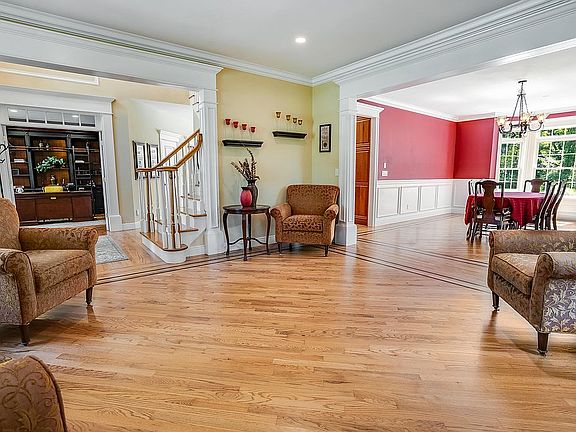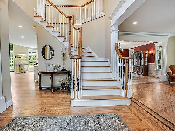 Call Anne-Marie 845-222-3414 CLICK ON THE PICTURES FOR ROOM DESCRIPTIONS .One of a kind Beautiful East Fishkill Custom built Colonial set on 3 private bucolic acres. This home has all of the bells and whistles. Attention to detail in every room. There are hardwood floors throughout, custom walnut inlays and herringbone design. Anderson wood windows with transoms and beautiful custom woodwork and built-ins throughout. The family room boasts a stunning 2 story stone, wood burning fpl w/ a gas line. The fireplace is flanked with custom built-ins, a 2 story glass wall and coffered ceilings. The kitchen is a chefs delight! Custom Cherry cabinets with built-in appliances, Two dishwashers, a pot filler, warming draw, custom hood w/ a commercial vent over a 4 burner stove with a grill! The Master bath boasts a whirlpool tub, custom steam shower and marble....You may not want to leave this spa like oasis. Looking for extra space for Mom, the Aupair, in house office or just a great area to use for fun, there is an extra space off of the main living area that is fully equipped to do any of these things. This space also has a beautiful kitchen and spa like bath, all hardwood, built-ins and granite.A large main room w/ access to the deck Br and Den. The 3 car garage has extra insulation, roughed for heat, 8' doors, steel I-Beam and stair access to the basement and home. The attic is FULL walk up for easy access storage. 3 zone Hydro air heating. The basement has 10" poured concrete foundation, 9' ceilings, rough plumbing, 3 stair cases to access to the garage, house and yard. The back yard is open and flat with plenty of room to play or entertain and has an oversized L shaped pool that is surrounded by complete privacy in a serene setting. Mins to Taconic and town. Owner/Agent call 845-222-3414