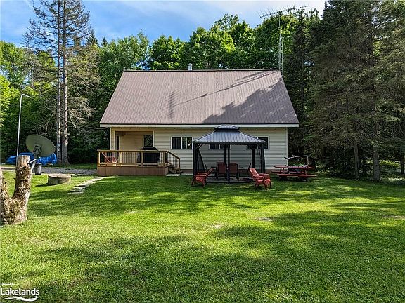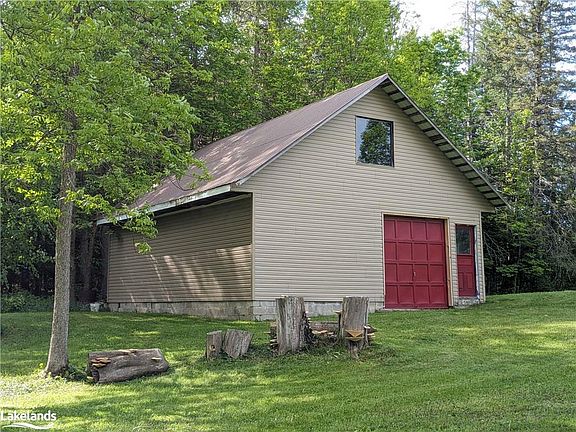 Impressively Presented 1 1/2 Storey 1769 sq. ft 3 Bedroom 1 Bathroom Home/Cottage/Retreat/Getaway! Immaculately Landscaped Lot. This Year Round Home has it's own Driveway at #58. The Detached 28' x 26' Garage also has it's own Driveway at #50 Mary Street. Relax on Your Front Porch overlooking Your Estate Style Grounds big enough for Creative Playground, Party Picnic Awning Entertaining, Firepit for Romantic Campfires and Memories to be made. Inside You will be impressed with the Stainless Steet Appliances and Island in the Kitchen. Formal Dining Area and Livingroom big enough for Sectional Couch. 2 Bedrooms on Main Floor plus 3 piece bath with Walk-in Shower. Beautiful Staircase to Upper Level with an Amazing Games Room measuring 27' x 12' along with a Romantic Primary Bedroom overlooking the grounds. My Front Closed in Porch has Washer and Dryer. Heated with a Newer Forced Air Propane Furnace. Just a short walk to the Public Beach and Docks with Picnic Area and Fishing. Ahmic Lake can be seen right across the street. There is a Baseball Diamond with Ball Team in Village. Ahmic Harbour has a Bakery/Pizza Shop/Ice Cream. Ahmic Lake is part of a 40 mile Waterway System for Your Boating Pleasure! Make this Your New Destination for Family and Friends! Available Immediately!
