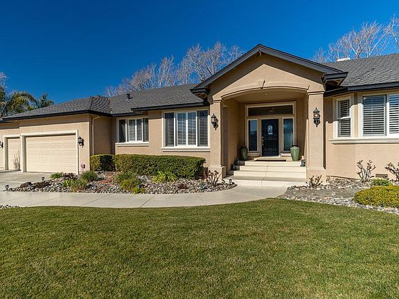 This impressive home located in Ridgemark GCC could be yours! Located on a 14,800+ sq ft lot with beautiful views of the fairway and mountains, in addition to the security of being in a gated community. Enjoy the large kitchen with its center island, double ovens, built-in refrigerator, built-in desk and skylight offering an abundance of natural light. Take in the views of the back from the Living Room which include built-in bookcases/cabinets on each side of the gas fireplace, and sliding door out to the back patio. Beautiful Formal Dining is located off the kitchen area. Primary Bedroom Retreat offers a large sitting area with fireplace for those chilly days. 2nd Primary Bedroom has bay window, large closet and full bathroom. The west wing offers another bedroom with close access to a full bath room for guests/in-laws. Enjoy the convenience of working from home with the 4th bedroom (currently an office). For the golf player, have the convenience of your own golf path to the course!