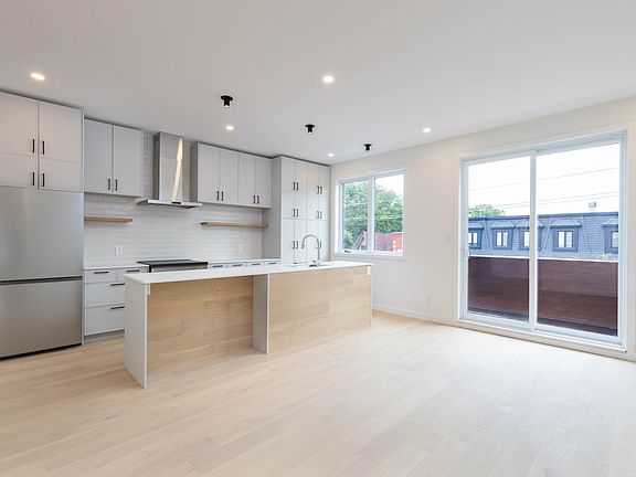 Modern, spacious, and full of light, these stunning three-level penthouse residences offering the space and comfort of a private home in the heart of Leslieville. With two bedrooms, three bathrooms, a large open-concept main floor, and a full top-floor flex space that could double as a lounge or principal 3rd bedroom retreat, each suite is designed for modern living. Highlights include two private balconies, a stunning rooftop deck, a chef's kitchen with full-height cabinetry and a large island, hardwood flooring throughout, and abundant natural light from oversized windows on every level. Your private home with the ease of rental living in the heart of Leslieville. Main Floor: -Family-sized open-concept living area with generous seating space -Chef's kitchen with full-height cabinetry, stone counters, premium appliances, and large island -Well laid out dining room and living rooms -Stylish powder room for guests - Balcony off the kitchen Second Floor: - A bright principal bedroom with balcony, dressing room and ensuite bathroom -Luxurious primary ensuite with custom vanity, large shower, and spa-like details -Dressing room with multiple closets and drawers in various formats -Central bathroom with clean modern finishes -A second bedroom with built-in closets Third Floor: -A stunning entertainment lounge or flex space -Direct access to a large, private rooftop deck, perfect for relaxing or hosting From the rich hardwood flooring to the custom millwork and curated fixtures, every detail is crafted for comfort and elegance. Tenants are responsible for setting up and maintaining their own Toronto Hydro electricity account. In addition, tenants will be billed for 12% of the building's monthly gas usage and 12% of the quarterly water charges. All utility charges will be supported by copies of the original provider bills; no markup is applied.