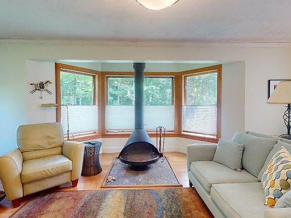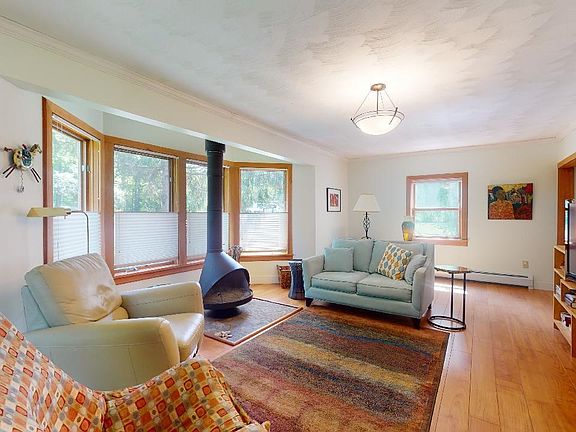 Enjoy private country living in this updated classic farmhouse on 2.5 gorgeous, park-like acres. This lovingly maintained home has 3 bedrooms, plus an office/den and 2 bathrooms. Beautifully remodeled eat-in kitchen with Silestone countertops and SS appliances including a convection oven. Enjoy entertaining in the separate dining area with soft pine floors. Spacious fully remodeled & expanded living room with cozy woodstove. Walkout basement with workshop and large detached garage off the mudroom. Mountain views from your delightfully landscaped stone patio, beautiful mature perennial beds, fruit trees, blueberries, raised vegetable garden beds and stunning rock wall gardens. Enjoy all 4 seasons on your swimming and skating pond. Improvements include house roof (7 yrs), new boiler (2 yrs), new HW heater (1 yr), most windows have been replaced plus the new deck. Home sold furnished, excluding some artwork & personal items. Great location and only 25 min to Burlington, Essex or St. Albans.
