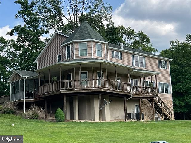 This beautiful home sits on 4.01 acres of open land. The house has three floors finished with over 5,000+ Sq Ft finished. 4 bedrooms and 3.5 baths. Floors on main level are brazilin cherry wood. Kitchen is large with large island and upgraded counter tops. Beautiful maple kitchen cabinets with pantry. Eat in kitchen and also a separate dining room with fireplace. Master bedroom is on main level with master suite and walk in closet. Main level consist of master suite, laundry room, kitchen, dining and living area. Upstairs has another living area and three bedrooms and two baths. There is another master upstairs with jacuzzi tub and a Roman shower with a walk in closet. There is also another gas fireplace upstairs. On the finished lower level is another family room that is is completely finished. Through the lower level you can access the two car attached garage. There is a wrap around porch in front that leads into a screened in porch. On the back you have a large deck with hot tub(conveys as is) and also another small porch going into a mudroom.