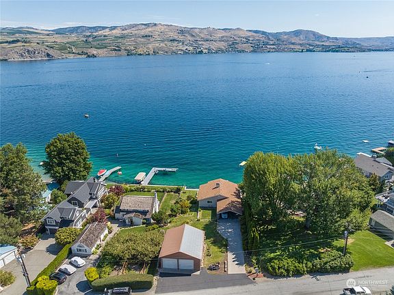 Location, location, location! Don't miss your chance to own this exceptional Minneapolis Beach 4 bedroom 3 bath waterfront property with detached 4 car- 2 bay shop. Mid-century modern interior design showcases vaulted ceilings, towering fireplace, 2 bedrooms and a kitchen on each floor. Property offers low easy sloping terrain with beautiful garden and play space. Enjoy approximately 80 feet of waterfront with updated dock and timeless bulkhead water access. Excellent privacy- plenty of parking and space for hobbies. Amazing Lake Chelan views and access make this place something very special. Enjoy as-is, remodel or re-design this beautiful property! By appointment only.