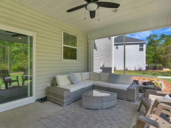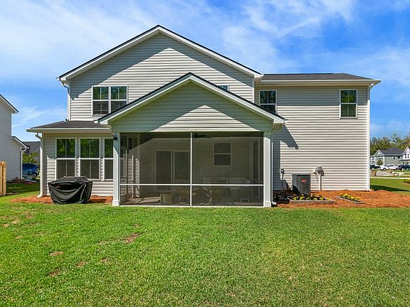 Better than new in the heart of award-winning The Commons at Richmond Hill! Desirable K Hovnanian "Olvera" plan with optional great room extension, island kitchen, full covered front porch, and back covered and screened porch. Luxury vinyl plank flooring throughout the first floor. White cabinetry with granite counters, full subway backsplash, stainless steel appliances, and custom shelves in the kitchen. Master suite features double walk-in closets. Flex room space at the front of the home perfect for a formal dining room, playroom, or home office. The garage has an electric vehicle charging station. The generous fully sodded private backyard looks out at woods, is nicely landscaped with new trees and a large mature oak tree. Walk to the community pool, fitness center, clubhouse, firepit, and mailboxes. Tastefully appointed and lovingly maintained.