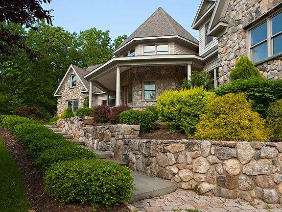 Exceptional custom built home on almost three acres bordering Bog Brook Reservoir. This stone home has freshly refinished wood floors, a two story family room with lots of windows and a stone fireplace. Gourmet kitchen with a Viking Range, Sub Zero refrigerator, custom cabinets, granite countertops and a limestone fireplace. First floor Master Bedroom suite. Fabulous Stone patio leads out to private backyard.