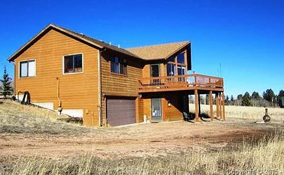 Fabulous wide open living areas w graceful vaults & a wall of glass that perfectly frames a breathtaking view of Pikes Peak, Open Meadows and beautiful Forest with Aspens. The massive glass wall also provides ample sunshine and energy saving warmth in the living areas. Enjoy the spacious Master with it's His & Hers Walk In Closets, Double Vanity and 5 piece bath with jetted tub and separate shower. SEE SUPPLEMENTAL REMARKS Open Kitchen with new granite counter tops, center island and breakfast bar allows easy access to the Living and Dining Room. The kitchen also features, recessed lighting and hard wood floors. Lower Level Family Room has a wall of windows that floods the area with light. For your outdoor entertainment and extended living area, there is a large wrap around deck. 2 car attached garage, plus a detached oversized 1 car garage and an detached 37-20 shop area with 220 electrical. Tile flooring in the bathrooms, solid 6 panel doors, custom stained glass, an antique light fixture, security system, installed radon system and a fully enclosed dog run for man's best friend. All located on 2 tranquil Acers sparsely wooded, horse friendly just 1/4 of a mile to Pike National Forest You can leave your front door on your ATV with no need for a trailer . All this and Colorado Springs is less than 40 minutes away. Great neighbors, see supplements for extras!