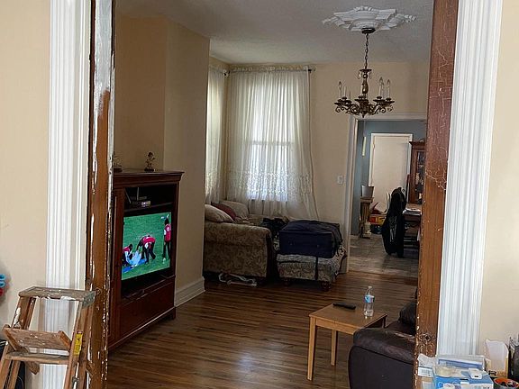 Move in ready or Investment Opportunity. Very rare find in the Chambersburg section of Trenton. Detached 2,016 sq ft. home with fenced in yard. Many features of this home are still original to the home built in 1866. You are greeted by a long foyer and a grand stair case. Downstairs features a family room, living room, dining room and eat in kitchen. Thick walls, pocket doors, extra wide molding, non working fireplace all show the true beauty of the era it was built. Newer appliances in the eat in kitchen with a door leading to the yard. Off the tiled, dining room is a second stair case to the upstairs bedrooms and bathroom. Bathroom was updated to neutral colors. Upstairs you are greeted by 4 bedrooms and hall closets for storage. Walk-up attic that could be made into a 5th bedroom or rec room. Home is an Estate Sale being sold "AS IS". House is occupied. Buyer is responsible for all CO's and Trenton inspections & fees.