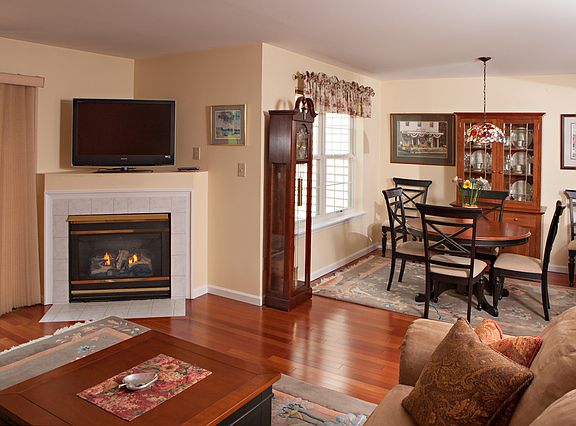 Easy living in this beautiful Berkshire model townhome. Nice and bright, featuring gas fireplace, sliding door to deck overlooking private backyard. Master bedroom suite with walk-in closet, cathedral ceiling, double vanity sink, skylight. Second bedroom has own full bath. Beautiful Brazilian cherry hardwood floors, updated kitchen, newer carpeting, window treatments, gutter helmets. Enjoy tennis, pool. Walk to golf, walking trail. Great location, convenient to train, stores. Immaculate, turnkey. Garage, storage.