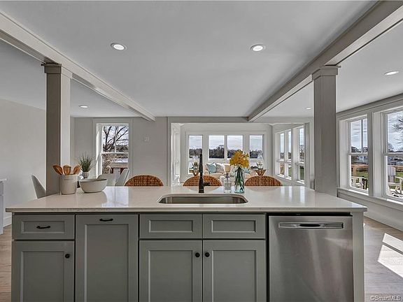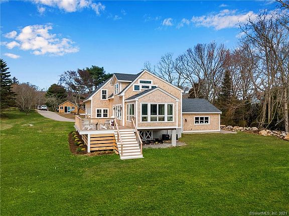 Waterfront home full of New England seaside charm! Located on Palmers Cove with over an acre of land, you will feel like you are on vacation every day with stunning views and direct access to incredible shoreline amenities. Once inside, youll find beautiful details throughout the completely remodeled home. Open main living areas feature crown molding, space for entertaining, and oversized windows for ample natural light. The gourmet kitchen features a large center island, stainless steel appliances, and beautiful cabinetry. The sunroom is sure to be a favorite spot to take in panoramic views of the water. On the other side of the home, a cozy living room with exposed wood beams creates a quiet retreat. Also on the first floor is a bedroom and full bathroom for one-level living. Upstairs, a sitting room at the top of the landing provides space for an office, and two generous bedrooms are complete with their own walk-in closet and ensuite bath. Outdoor living will also delight, with a new expansive cedar deck. Sit and relax while you enjoy the views, or head out to the water from your private dock. With direct access to Fishers Island Sound and hiking trails from the property, wake up and begin your adventure when you please! The property also features a 400 sq ft barn with electricity and water, ideal for a guest house, studio, or workshop. Located near Noanks beaches, restaurants, and shops. Added bonus: no flood insurance! Schedule your showing today!