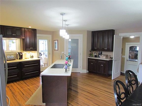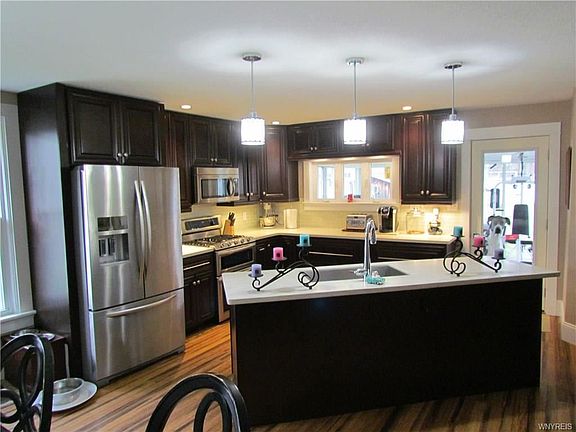Beautifully updated home on a double lot right in the Village of Allegany. This 4 bedroom home has been updated throughout. Large eat in kitchen with new cabinets and appliances. New hardwood floors throughout the downstairs. Master bedroom on the first level and three more bedrooms upstairs. There is a nice porch enclosure and deck overlooking the back yard. The double lot yard is fully fences to keep your fur babies secure while playing outside. Some finishing work in in progress and will be complete with in a couple weeks. Now being offered with a one year home warranty and 100% money back guarantee.