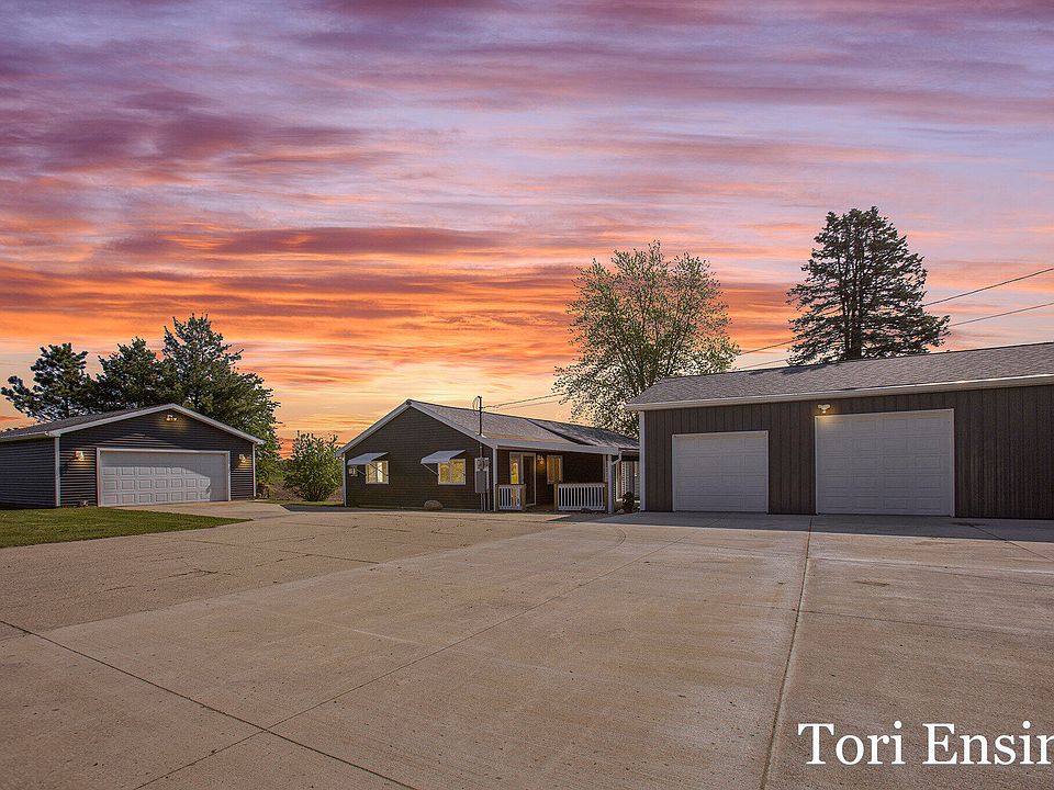 Main house has 2 bedrooms, an office that was once a bedroom and 1 full bathroom. Guest quarters has 1 bedroom and 1 full bathroom. All appliances to stay with the home. Many interior and exterior updates recently done including roof, siding, kitchen, flooring & more! Outside you will find a 2-stall detached 24x24 garage and a 24x32 pole barn both with electric. Shed is 12x20. New covered deck & cement . Home has A/C, Natural Gas & Internet! Many possibilities! Occupy the whole house, live in part and rent out the other, have guest or live-in family!