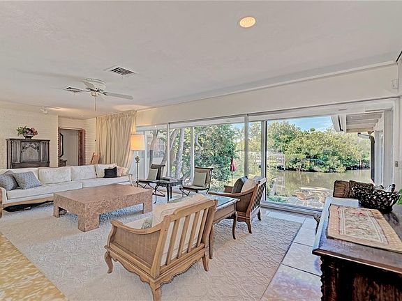 CANAL FRONTAGE! TWO LOTS 70x150 each, fantastic opportunity! Mid Century style home, Big water view an investment opportunity. The home has been lovingly cared for and maintained. Buyer to verify room sizes. A large 3 bedroom, 3 full baths and 1 half bath. This is a one of a kind property on the Island and its surrounded by beautiful trees and room for a pool. Home includes Boat House, open deck, garage, out door shower, two car carport, seawall, mature landscaping. There is a small basement area, 3 a/c units, inside utility room, den/office. Sold as is with right to inspect. EASY TO SHOW!