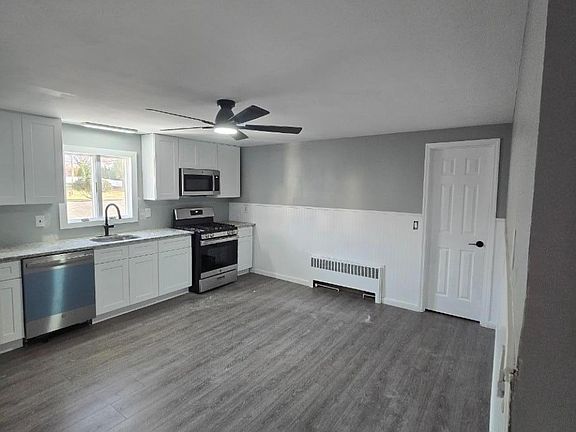 This beautifully renovated 2nd floor apartment is situated on a quiet cul-de-sac in a desirable section of Belleville, just one block from Nutley. The unit features a brand new kitchen with stone countertops and all new appliances, a modern bathroom with a one-piece shower and deep soaking tub, and high-quality gray vinyl flooring throughout and new carpeting on the stairs. Freshly painted rooms and ceilings, new doors, handles, trim, and updated lighting and ceiling fans create a bright and welcoming atmosphere. Enjoy the convenience of an in-unit stackable washer and dryer with new plumbing hookups, a full-width attic for ample storage, and parking options that include a detached one-car garage, additional driveway space, and free overnight street parking. Small dogs are welcome, making this stylish and comfortable apartment the perfect place to call home.