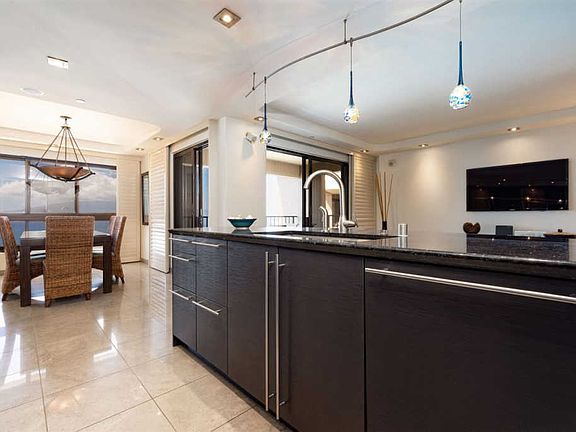 Premiere penthouse location on the interior center courtyard of the Kaanapali Alii overlooking pools, beach, coastline and the neightbor island of Lana'i. Superb ocean views from this rarely available location, perfect spot for watching whales and sunsets from your lanai. Beautifully remodeled 1-bedroom 2-bath plus den that has been transformed into a second sleeping area. Amazing finishes featuring granite upon entrance, custom European Cabinetry, as well as Sub Zero, Wolf Oven and Cooktop, Bosch dishwasher, washer and dryer. Italian tile floors throughout, added storage space, and superior furnishings included. Kaanapali Alii is considered the premiere condominium resort sprawling across 8 oceanfront acres along Kaanapali Beach. Amenities include an ocean facing swimming pool and hydro spa, beachfront barbecue facilities, three lighted tennis courts, a state of the art fully equipped health facility with yoga room and spa services available. Unit is rated an "A" in on the on-site rental management program.