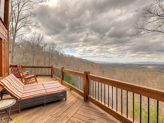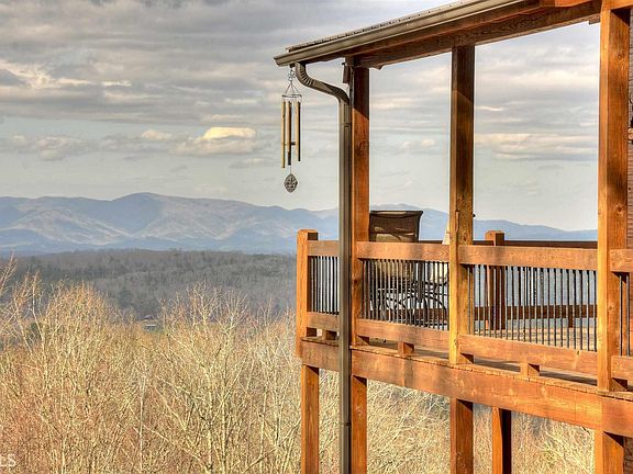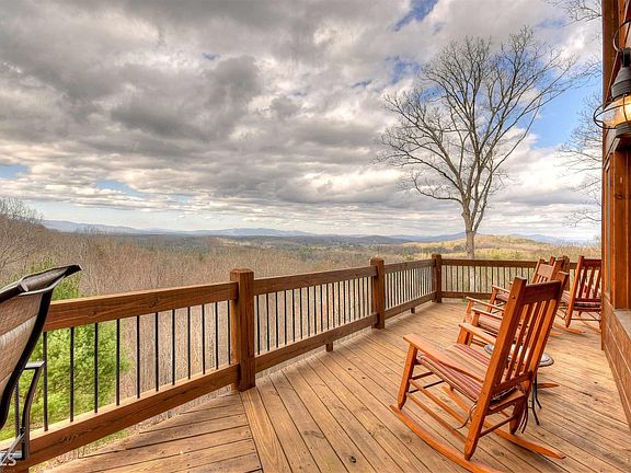 THIS LUXURIOUS MOUNTAIN TOP CABIN HAS A VIEW FOR MILES and offers 3 spacious bedrooms with loft, gourmet kitchen w/stainless steel-black appliances, custom granite countertops and cabinetry, popular prow front w/open greatroom complete with stacked stone fireplace and wall of windows showcasing the view, 3 custom tiled bathrooms w/granite countertops, finished terrace level with rec room, gas-log stacked-stone fireplace and wet bar, screened-in outdoor party deck w/fireplace, private hottub deck, all paved roads to gravel drive, and located under 5 miles to downtown Blue Ridge for shopping and dining, and within minutes to hiking, biking, kayaking, Lake Blue Ridge and the Toccoa River for all of your outdoor adventure pursuits. This cabin will not disappoint