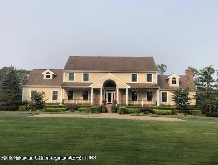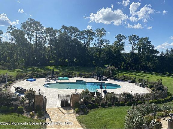 Stunning Colts Neck Custom-Built Beauty possessing all of the amenities of a Fine Estate. Situated on 2.52 acres of perfectly landscaped grounds, this gorgeous colonial is the one you have been waiting for! This 5 bedroom, 5.5 Bath residence offers a sophisticated open floor plan, featuring premium red oak floors throughout, spacious family room with tray ceiling, California Redwood Timber mantle showcasing a custom stone wall gas fireplace, Carlisle Plank Barnyard flooring with French doors leading to three season sunroom, overlooking a magnificent backyard oasis. Enjoy a fabulous chef's kitchen with all the bells and whistles, extensive natural cherry cabinetry, oversized granite island and counters with handmade English tile backsplash. Designed for entertaining, enjoy 2 commercial grade D/W, 2 full size main sinks, Dacor 6-burner gas stove with large oven, in addition to a Thermador wall oven, warming drawer and Sub-Zero refrigerator, no expense spared! First floor bedroom off the main kitchen leads to a full bath, mudroom with built-in cabinetry and 3-car heated garage. Your two-story foyer leads you to the second floor Primary Suite with Crema Marfil marble master bath, luxurious jacuzzi spa & steam shower for a peaceful getaway. Enjoy custom walk-in closets and a cozy sitting room with balcony that overlooks an outdoor retreat that is a highlight of this very special home. Additional upper-level bedrooms include a Princess Suite and two bedrooms with Jack-n-Jill. Stroll down to a finished w/o basement that is truly a third level of living that is unique in features with abundant entertaining space, recreational and guest areas, full bath, custom kitchen, wine closet and plenty of storage! French doors lead to the exceptional exterior living space with 6600 sq.ft. of Travertine Marble, built in BBQ/kitchen for outdoor enjoyment and a spectacular, gated Diamond Bright saltwater pool which was designed for resort living! With swim outs at every point, built in jacuzzi and lush landscaping, this spectacular haven will make summers feel like you have traveled to a private island, a sanctuary for relaxation and family fun in the sun! Additional upgrades: 20 custom-made solid doors, 20 M Tech crystal doorknobs, whole house generator, garage and attic eco-friendly foam insulation and so much more! * Professional Photos Coming Soon!
